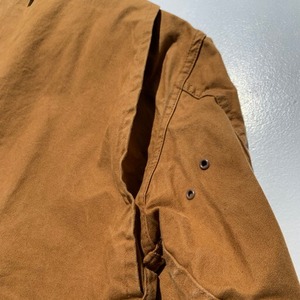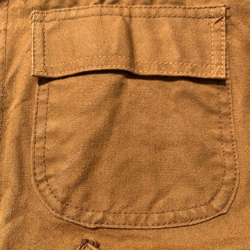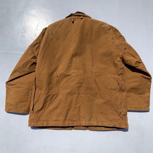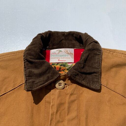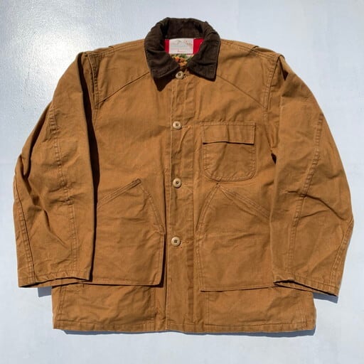 60年代頃のFOREMOSTハンティングジャケットです。アメリカ3大ストアとして知られるJCPennyが展開するプライベートブランドです。こちらのハンティングジャケットはダック地特有のアタリのような擦れはございますが、水の通っていないノンウォッシュのミントコンディションです。裏地に鳥などが描かれたフランネルをしようしており、ゲームポケット内のコーティングの劣化もございません。カートリッジホルダーも使用された形跡も無く、前オーナー様はデッドストックもしくはそれに限りなく近い状態で使用されていたのだと思います。サイズは42でM~L位。使い古されたハンティングジャケットは古着市場でも見つけることは安易ですが、ここまで状態の良い物はそう出会わないと思います。コレクションとしても非常に価値のある1着です。