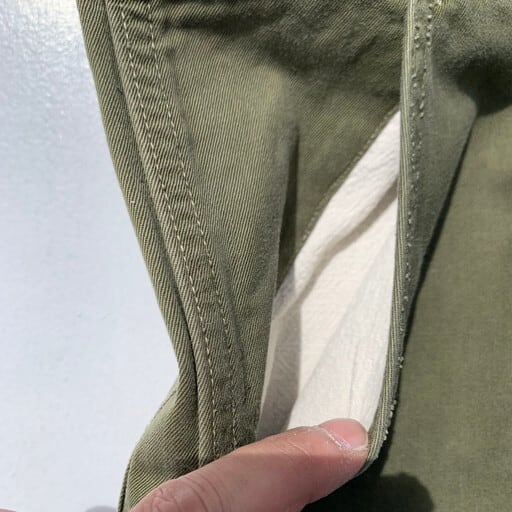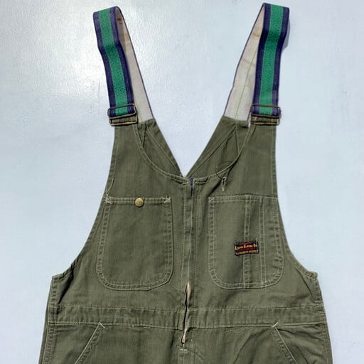 40年代頃のLANGWEARコットンオーバーオールです。フロントがジッパーで開閉できるWHIZITタイプです。コの字留めでアルミのKWIKというピンロックジッパーが使用されています。素材は恐らくコットンツイルで、フライボタンは黒ラッカーのドーナツ型です。サイドはダブルステッチ。バックポケット内側にユニオンチケットと思われる生地が縫い付けられていますが、文字は確認できません。目立つ大きなダメージや汚れもない美品です。WHIZITタイプのオーバーオールは60年代や70年代の物は比較的市場で見かけますが、40年代頃のものはかなり出現率も低くかなり希少な個体といえます。W36とオーバーオールにしてはやや小さめですので、細身の方や女性に大変オススメな1着です。ありそうでなかなか無いカーキ色ですので、デニムジャケットなどとの相性は抜群です。