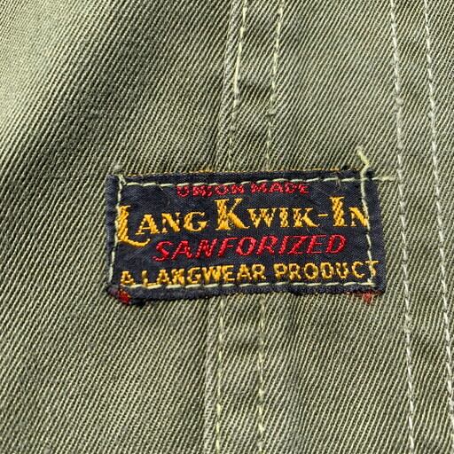 40's 50's LANGWEAR ラングウェア LANG KWIK IN コットンオーバーオール WHIZITタイプ カーキ ワークウェア コの字 ダブルステッチ マイナーブランド レア 美品 USA製 W36 希少 ヴィンテージ BA-875 RM1244H