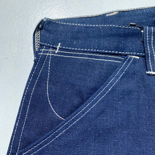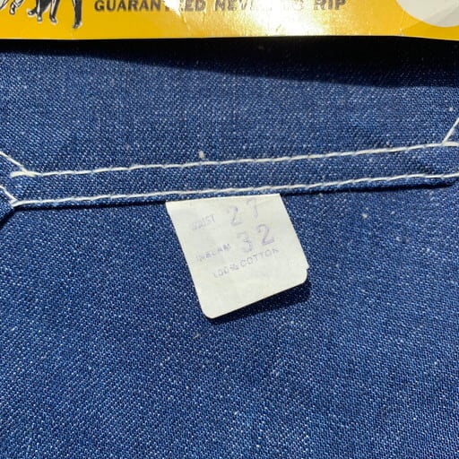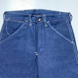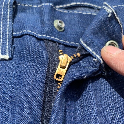 70年代頃のSWEET ORRデニムペインターパンツです。フラッシャー付きのデッドストックです。1871年にニューヨーク州ワッピンガーズフォールズで創業した歴史のあるワークウェアブランドです。1965年に一度ブランドは消滅しますが70年代に入り復活を遂げております。こちらは復活して間もない頃のアイテムと思われます。フラッシャーもしっかりと残っております。ジッパーは42TALON。ダメージなどはございませんが、保管時についたとされるヤケが左足の膝裏付近に見られます。サイズはW27と小さめですので、女性にオススメな1本です。デッドストック物は今後価格も高くなると思いますので、コレクションとしても価値のあるアイテムです。