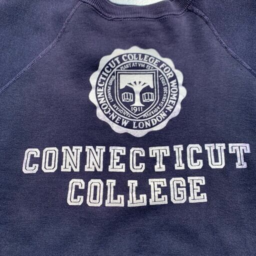 60's CHAMPION チャンピオン ラグランスリーブスウェット フロッキープリント ランタグ インC ネイビー CONNECTICUT COLLEGE 美品 MEDIUM USA製 希少 ヴィンテージ BA-886 RM1255H