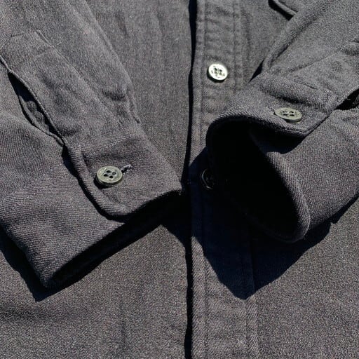 40年代頃のU.S.NAVYウールCPOシャツです。ブラックのような深いネイビーカラーのこちらは、アメリカ海軍下士官(Chief Petty Officer)達が着用していたシャツです。第二次世界大戦時に採用されたとされるフロントポケットが、片方にだけつく片ポケ仕様。サイドは深いラウンドで、マチはございません。全てアンカーボタンで揃っています。首タグが欠損していますが、NAVAL CLOTHING FACTORYのプリントタグが付いていたと思われます。虫食いなど無く状態はグッドコンディションですが、フロントとバックに小さな目立ちにくいハンドリペアが施されている箇所がございます。サイズはS~M相当。片ポケのCPO自体なかなか出ないアイテムですのでサイズの合う方は是非いかがでしょうか。