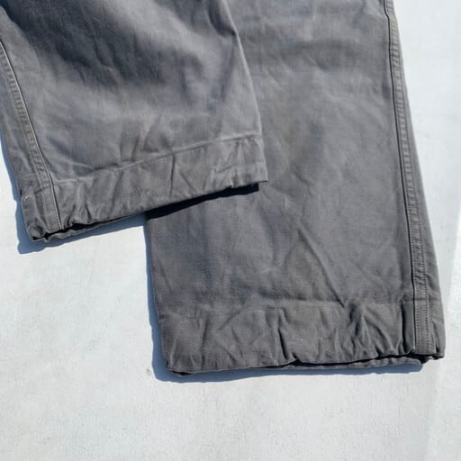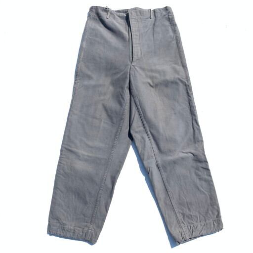 60年代のオランダ軍ダブルフェイストラウザーズです。フロントがL字のベロクロ仕様の珍しいパンツで、生地はオランダ軍のフィールドパンツ同様のコットンバックサテンダブルフェイス地です。グレーのフィールドパーカーが存在していますので、その対のアイテムかもしれませんが詳細不明です。バックポケット以外ポケットは無く非常にシンプルなデザインです。生地が2重なので非常に丈夫で防風にも長けています。バイカーの方にもお勧めな1っポンです。全体に使用感があり、薄い汚れなどございますが、ダメージはございません。W32でややテーパード掛かったシルエットです。