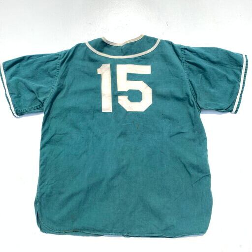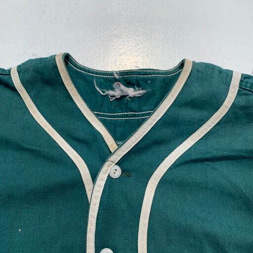 50's 60's UNISPORT コットンベースボールシャツ フォレストグリーン UNIVERSAL SPORTS CORPORATION L位 ナンバリング 15 希少 ヴィンテージ BA-940 RM1309H