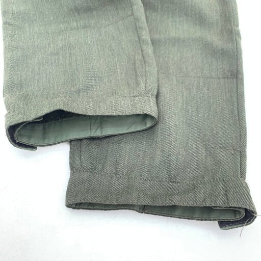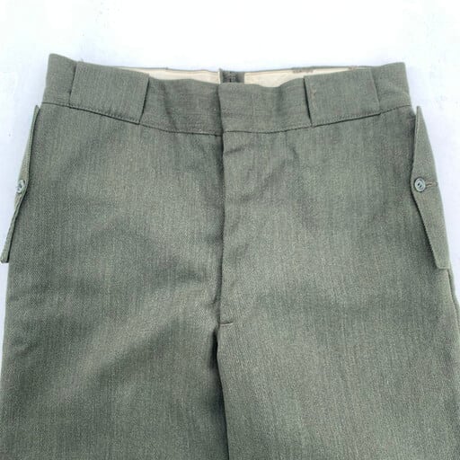 70年代から80年代頃のEddie Bauerの1950STYLEハンティングパンツです。ウールとポリの混紡素材で、サージのような質感です。フロントはロケット42TALONジッパー。ハンドウォーマーポケットにはフラップが付き、バックポケットは左右非対称となっています。裾はベロクロで調整可能。50年代頃のハンティングやフィッシングのパンツを元に作られたアーカイブのような位置づけのアイテムと思われます。多少の使用感はございますが、ダメージや汚れのほとんど無い美品です。クロップドタイプですのでシャフトの長いハンティングブーツとの相性は抜群です。市場ではあまり見かけない少し珍しいアイテムですので、気になる方は是非いかがでしょうか。