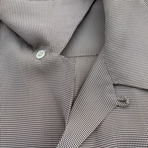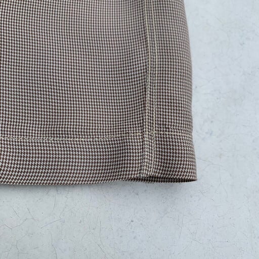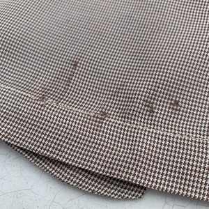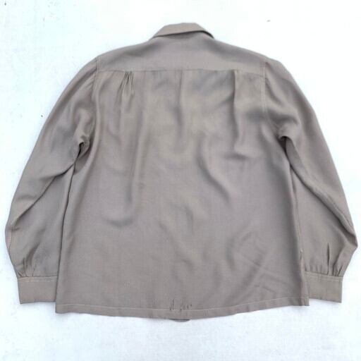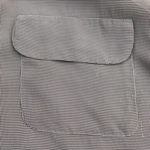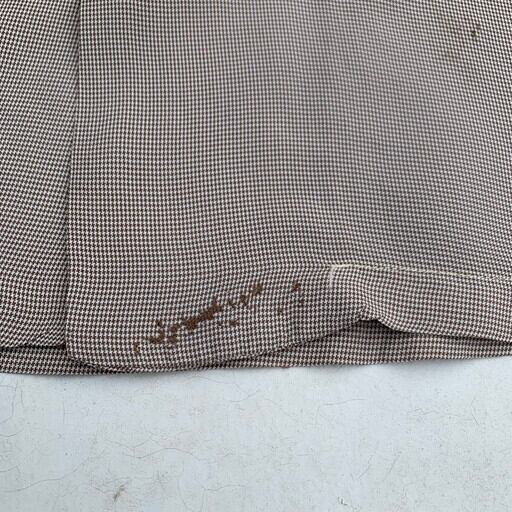 40年代から50年代頃の物と思われるLion of Troyのオープンカラーシャツです。1862年ニューヨーク州トロイにて創業の老舗シャツメーカーです。ボックス型で、細かいハウンドトゥースチェック(千鳥格子)で上品な1着です。ボタンは全てシェルボタン、サイドは目の詰まったダブルステッチです。ロングポイントの襟とフラップは袋縫いです。シャリ感のある生地ですが恐らくコットンだと思います。薄いシミやピンホールが方や裾など所々に見られます。ハンドリペアと思われる箇所もフロントや袖口に巣s腰見られます。大きくひどいダメージはございません。年代を考慮すると許容範囲かと思います。さらっとした肌心地なので、これからの季節にとても良い1枚です。色味も落ち着いていますので、幅広いスタイリングに使えるアイテムでお勧めです。