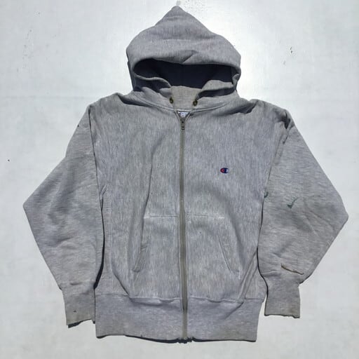 90's Champion チャンピオン リバースウィーブ フルジップパーカー グレー 目玉 刺繍トリコタグ ダメージ Mサイズ USA製 希少 ヴィンテージ BA-960 RM1329H