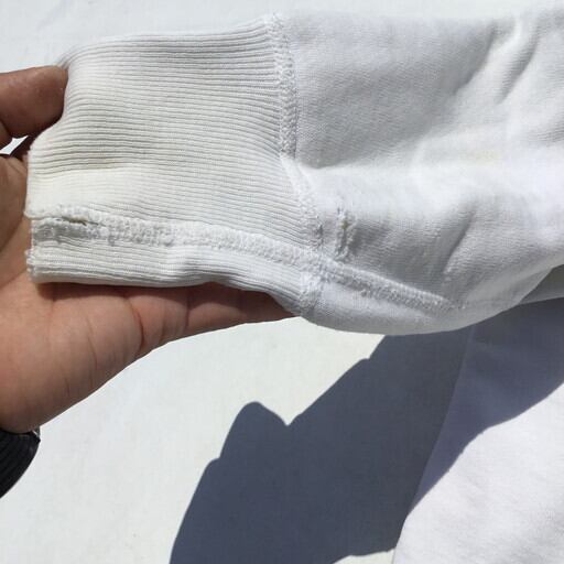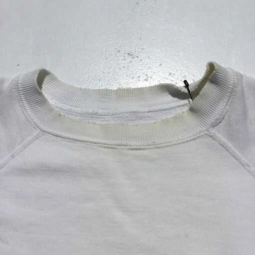 60年代頃のUNKNOWNラグランスリーブスウェットです。タグ欠損のためメーカーは不明。フロントにラバーで、BASS&BOURBON TEAM 1964とプリントされています。ラグランスリーブに脇ガゼット有り。ボディや袖などに破れや汚れが見られます。袖付近に生地が薄くなっている箇所がございます。ホワイトボディにブルーのプリントが入る物はあまり見かけないのではないでしょうか?サイズも大きめでLサイズ相当です。リペアなど楽しめる方には大変お勧めです。