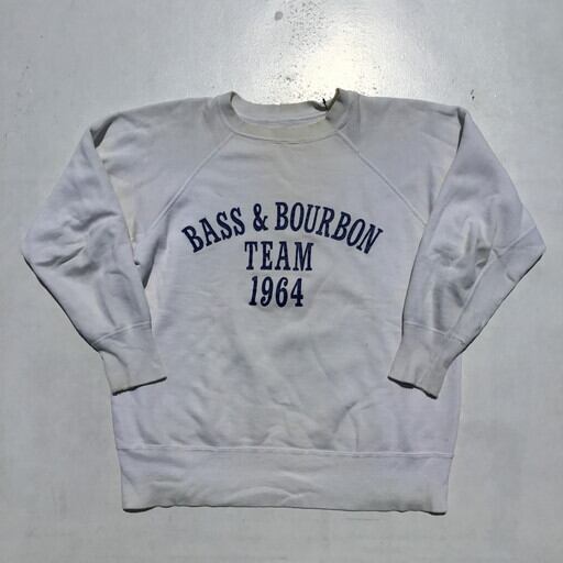 60's UNKNOWN ラグランスリーブスウェット BASS&BOURBON TEAM 1964 ホワイト ブルー ダメージ有り 位 希少 ヴィンテージ BA-962 RM1331H