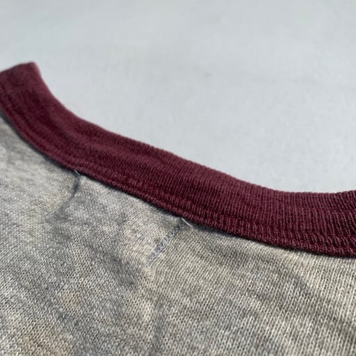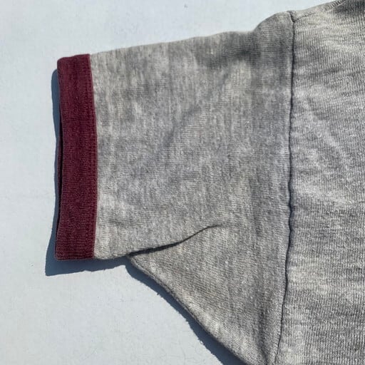 50's 60's WILTON ウィルトン リンガーTシャツ トリム 杢グレー エンジ DOHERTY HIGH カレッジ 染み込みプリント Mサイズ 希少 ヴィンテージ BA-971 RM1340H
