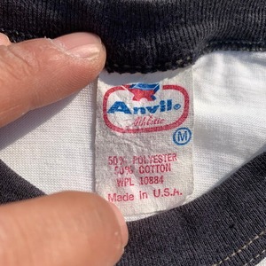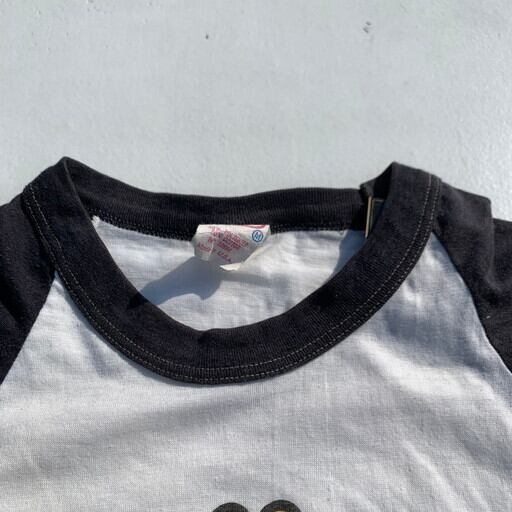 80年代のBLUE OYSTER CULT1981ツアーTシャツです。1967年結成のへヴィーメタルのはしりと呼ばれるバンドの1つで有名です。1981年7月に発売された8枚目のアルバム「FIRE OF UNKNOWN ORIGIN」のツアーTシャツで、ボディはAnvilのラグラン7分袖です。1981 MOCのコピーライトが入ります。サイズはMサイズですが身幅がタイトですので、Sサイズ相当です。女性も着易いサイズ感です。全体に毛羽立ちや色褪せが見られます。BLUE OYSTER CULTのツアーTはなかなか市場で見かけないコレクターズアイテムです。BLACK SABBASなどお好きな方は是非いかがでしょうか。【肩幅】-cm【身幅】42.5cm【着丈】64cm【袖丈:ラグランの為脇した】40cm