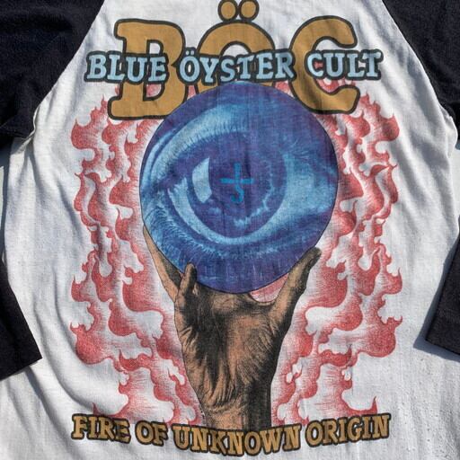 80's BLUE OYSTER CULT ブルーオイスターカルト ツアーTシャツ 7分袖 BOC バンドTee FIRE OF UNKNOWN ORIGIN 1981TOUR コピーライト レア へヴィーメタル Anvil ラグラン USA製 Mサイズ 希少 ヴィンテージ BA-979 RM1348H