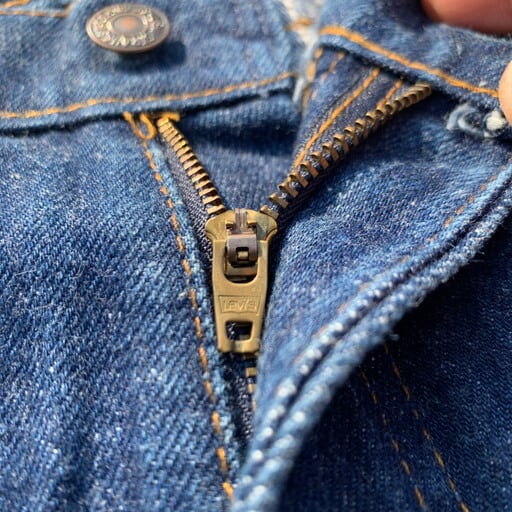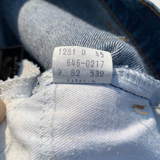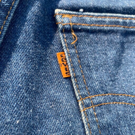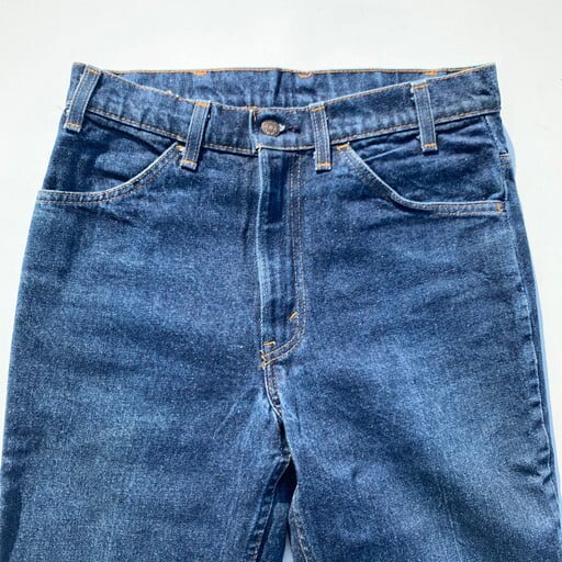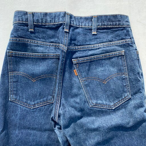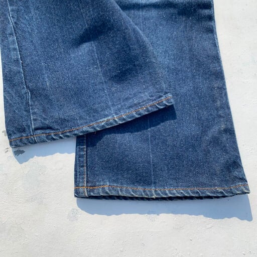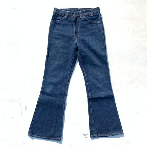 80年代のLevi's646ベルボトムデニムです。1969年に登場したこちらは膝下から裾に向かって広がるベルボトムと呼ばれるモデルで、この646よりさらに広がりがある684はビッグベルと呼ばれます。ヒッピー達が好んで着用していたことはあまりにも有名ですね。こちらは82年に作られた個体で、オレンジタブ、スモールe、色は7~8割残っています。センターにプレス跡がございます。膝裏にうっすらとハチノスが入ります。色もまだ濃いので、育て甲斐のある1本です。お探しだった方は是非この機会にいかがでしょうか。W30~W31の間くらいです。