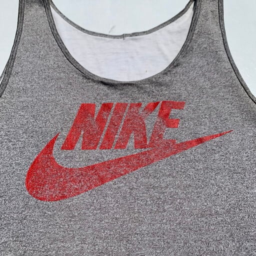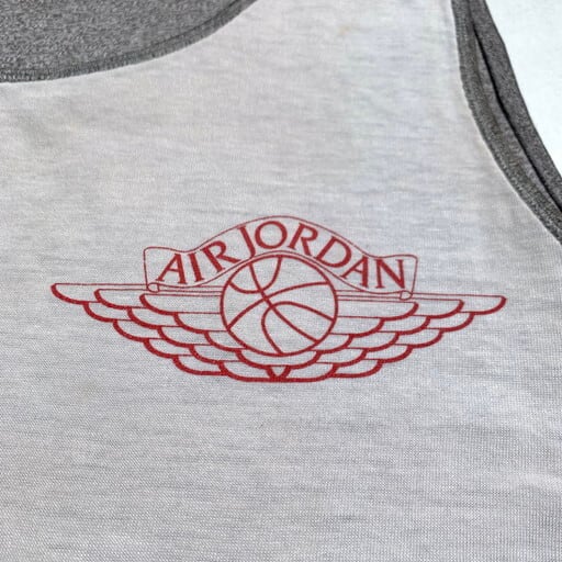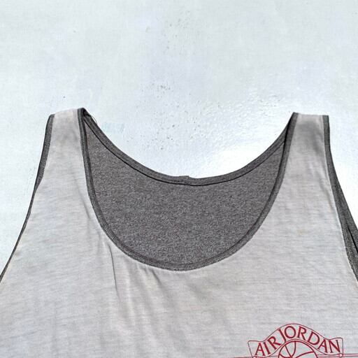 80年代頃のNIKE AIR JORDANリバーシブルタンクトップです。白面には胸元にエアジョーダンのウィングロゴ、杢グレー面はNIKEロゴがプリントされています。裾には80年代当時に採用されていた紺タグが付きます。使用感が見られ薄汚れなど見られます。黒赤の2トーンは見かけますが、この白灰ボディは比較的流通数も少ないレアカラーと思われます。サイズはLですので、程よくゆったりとラフに着ていただけます。スポーティーなスタイルに是非いかがでしょうか。