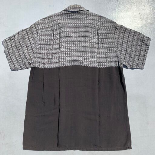 60's Shaply 切り替えオープンカラーシャツ ボックスシャツ コットン ホワイト グレー 白 墨黒 Mサイズ 希少 ヴィンテージ BA-992 RM1361H