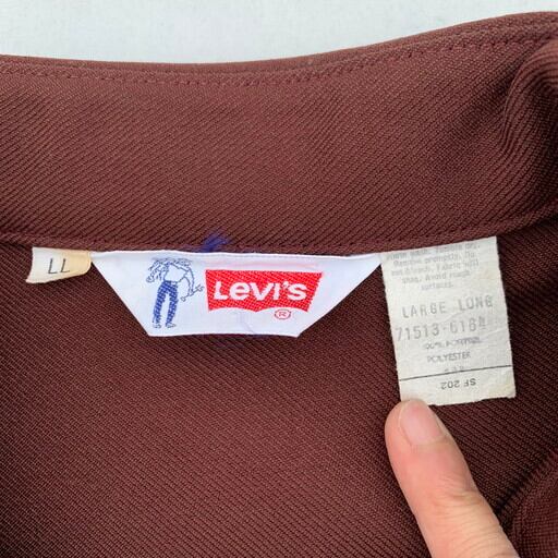 70's Levi's リーバイス サドルマン ポリエステルシャツ ジャケット 71513-6184 エンジ ワインレッド LARGE LONG 長袖 黒金タブ オープンカラー 希少 ヴィンテージ BA-995 RM1364H