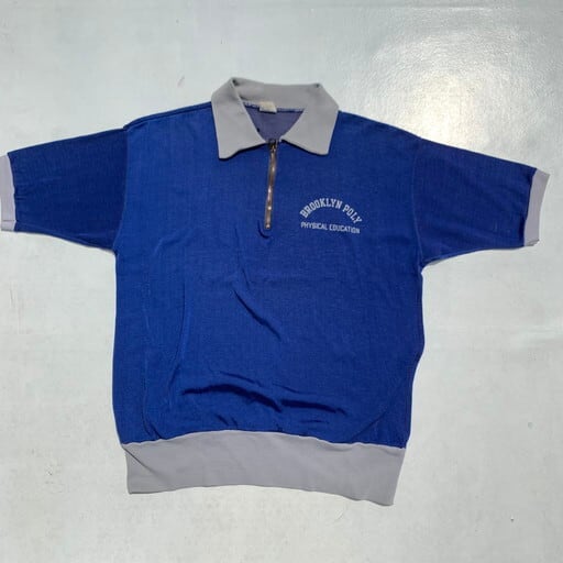 60年代から70年代初頭頃のCHAMPIONレーヨンハーフジップシャツです。PRODUCTSタグが付くこちらは、1854年に大学予備校として設立され、1890年にブルックリン工科大学として名称を変更したBROOKLYN POLYのプリントが胸元に施されています。レーヨンボディにTALONのハーフジップが取り付けられており、大学の体操着として使用されていたアイテムです。色褪せや若干の毛羽立ちがございます。タグは半分解れています。支障をきたすダメージはございません。サイズはL相当。着丈もありますので、着易いサイズ感ではないでしょうか。近年ヴィンテージチャンピオンの需要も高まりつつありますので、チャンピオンがお好きな方は是非この機会にいかがでしょうか。