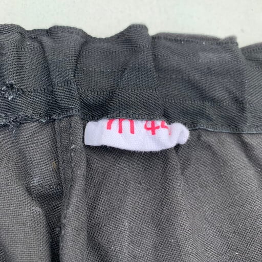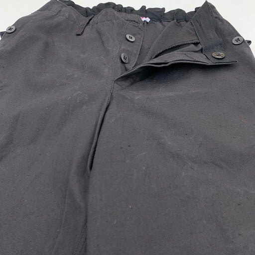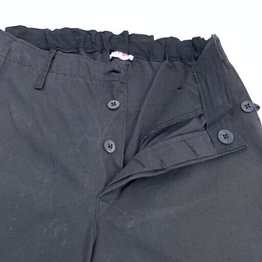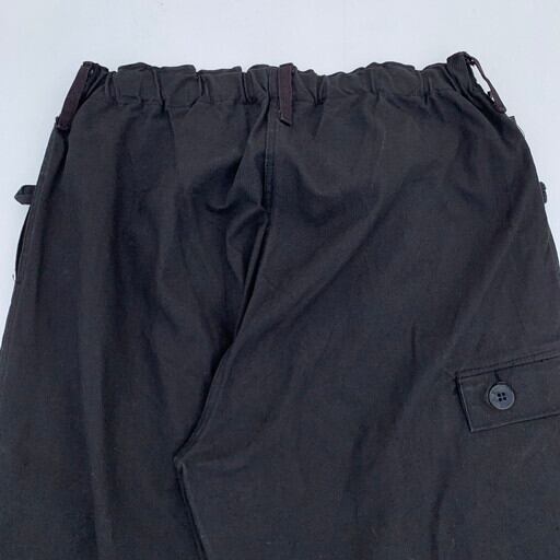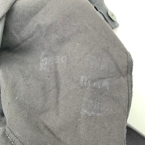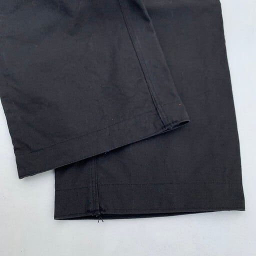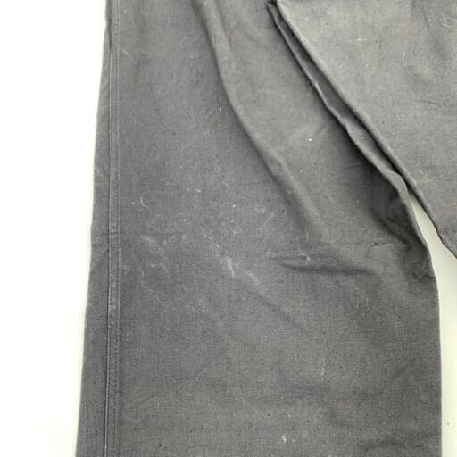 60年代から70年代頃の物と思われるNVAコットンオーバーパンツです。1956年に創設されたNVA(東ドイツ人民軍)は1989年11月9日に旅行及び国外移住の大幅な規制緩和の政令が発令された翌11月10日にベルリンの壁が崩壊(撤去)し、1990年10月に東西ドイツ統一と共に解散となった部隊です。リネン混のようなブラックのコットン生地で、作業などを行う際に着用されていたオーバーパンツです。ウエスト半分がゴムで伸縮しますので、2~3インチ程伸びます。元は右ポケットは貫通式で、ベルトループは付属しませんが、こちらの個体はカスタムされていますので、右ポケットとベルトループが取り付けられています。生地の特性上擦れによる色落ちが各所に見られますがダメージ等はございません。シンプルながら綺麗なゆったりストレートですので、幅広いコーディネートにお使いいただけます。