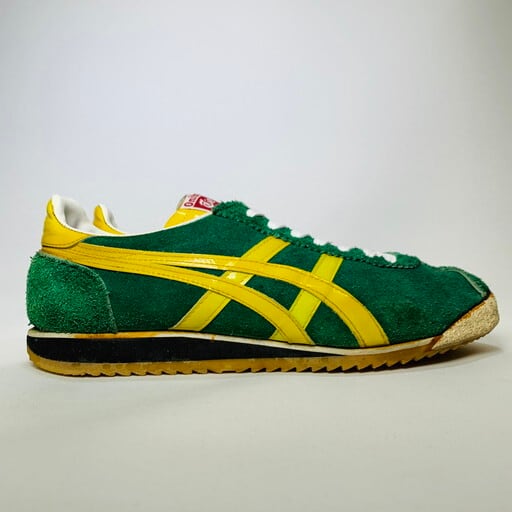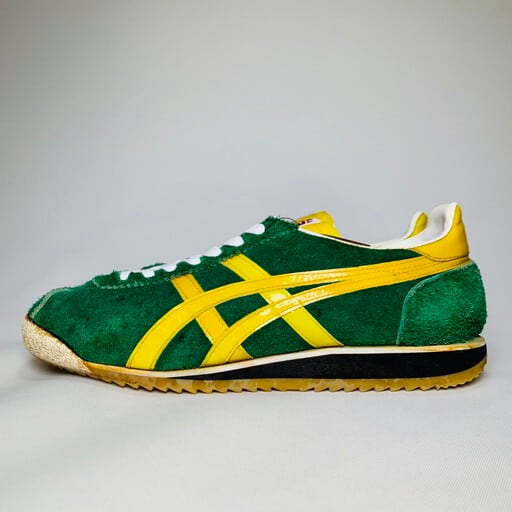 70's Onitsuka Tiger オニツカタイガー Limber Up リンバーアップ オリジナル スエードスニーカー エナメル グリーン イエロー 緑 黄 日本製 US10 28cm 状態良好 希少 ヴィンテージ BA-1014 RM1383H