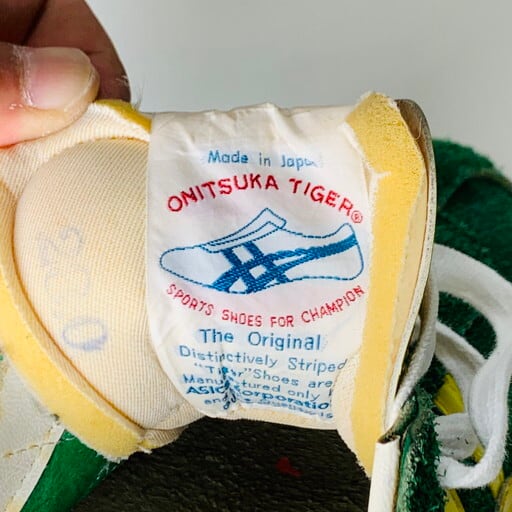 70年代のOnitsuka Tigerリンバーアップです。復刻モデルではなく当時のオリジナルです。1960年代にはオニツカタイガーとNIKEで共同開発していたことはあまりにも有名な話です。(後にコルテッツの名称の使用権をめぐる訴訟が起こります)スエードにエナメルといったデザインが革新的で、グリーンとイエローの配色がGOODです。スエードのアッパーにシミはございますが、エナメルや履き口のレザーにダメージはございません。ソール減りも少なく、硬化していませんのでしなります。シュータンのスポンジも残っています。コットン100%のシューレースは洗濯済みです。サイズは28cm。古いモデルですのでやや小さめに作られている為、普段27.5cmのスニーカーを履いているスタッフでちょうど良いサイズ感です。サイズ、状態共に良い物はなかなか市場にも出ないアイテムですので、コレクションにいかがでしょうか。