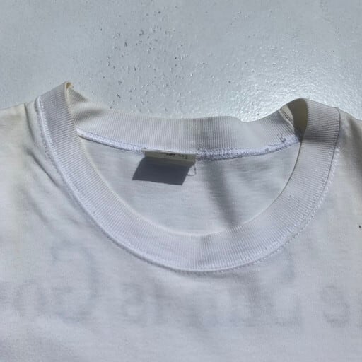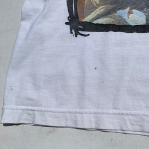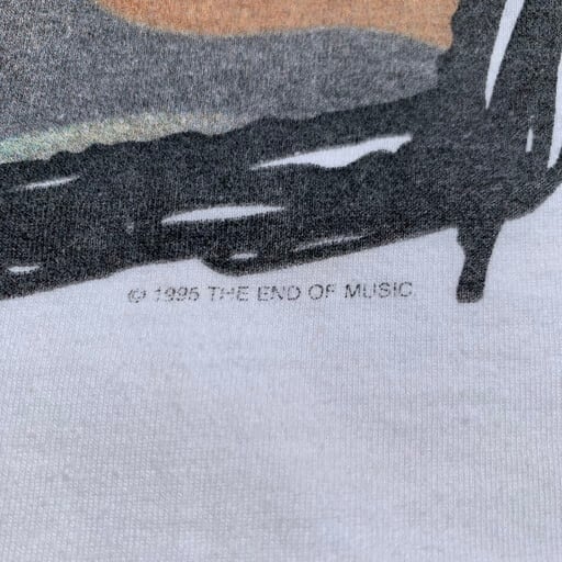 90年代のカートコバーン追悼Tシャツです。世界的に有名な伝説のグランジロックバンドNIRVANAのヴォーカルであるカートコバーンが、1994年27歳という若さで亡くなった際追悼Tシャツが作られました。様々なタイプが存在しますが、こちらは1993年に音楽番組「MTVアンプラグド(MTV Unplugged)」で演奏した際の写真がプリントされており、この写真に写っていたモヘアカーディガンは昨年オークションで3000万円以上の高値で落札されたのは有名な話です。背面にはアルバム「In Utero」に収められた楽曲「Dumb」の一節がプリントされています。シミなどはございますが、Lサイズで着易いサイズ感です。有名アーティストも着用していた事で知られ価格も非常に高騰しています。追悼Teeの中でもレアなプリントですので、NIRVANA、カートコバーンファンは必見の1着です。