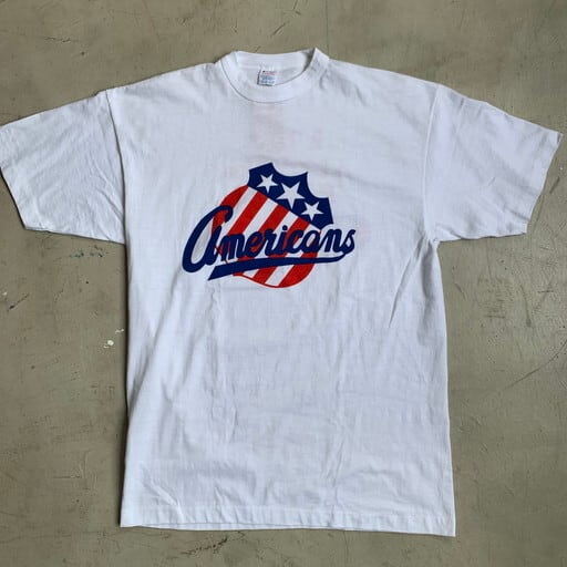 80年代頃のチャンピオンプリントTシャツです。トリコタグが付き、プリントは両面ともに染み込みプリントです。この背面に入るプリントと同様のデザインのTシャツのほとんどが、フロントに施されているものが多く背面に入る物は珍しいと思います。使用感も少なく大変綺麗です。サイズはXLでゆったりとしています。着込めば染み込みプリントの風合いも増しカッコ良くなるアイテムです。