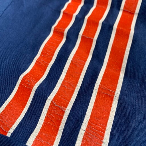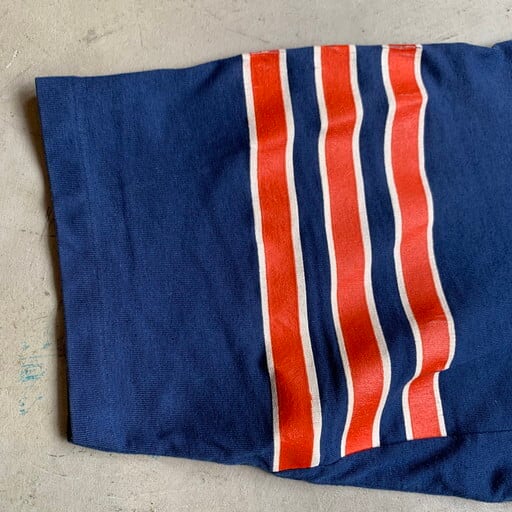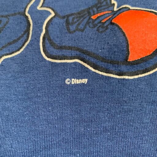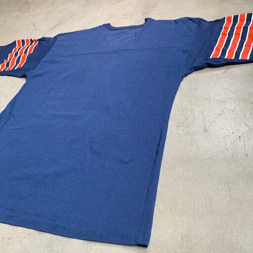 70年代から80年代頃のフットボールTシャツです。首タグの印字がほぼ消えているので確証はございませんがARTEX社のボディを使用していると思います。FLORIDA GATORSの衣装を着たミッキーマウスがデザインされています。チームカラーのブルーとオレンジの発色の良い1着です。ダメージは特にはございませんが、プリントに割れが若干見られます。サイズはXLで、着丈も長く大きいサイズです。男性はもちろんですが、女性の方がフレアパンツと合わせてワンピース感覚で着ていただいてもかわいいアイテムです。