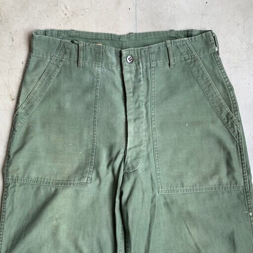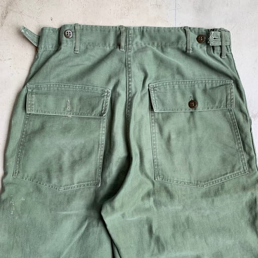 60's U.S.ARMY ベイカーパンツ 米軍 サイドアジャスト有り コットンサテン ミリタリー オフセット W33 希少 ヴィンテージ BA-1051 RM1420H