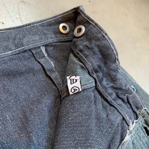50年代から60年代頃のスイス軍デニムオーバーパンツです。プラスチックボタンとメタルボタンの両方が使用されたタイプで、後期型と思われます。厚手のデニム生地を使用しており、ベイカーパンツのようなフロントの丸みのあるポケットが特徴的で、サイドのポケットは貫通式となっています。センタープレス跡がございますが、ダメージ等は特にございません。グリーンとグレーの間のような色合いです。サスペンダーボタンも付いてますのでサスペンダーでも着用可能です。サイズはW36で1つ前の前期型に比べテーパードの効いたシルエットです。コットンサテンのベイカーパンツに比べ肉厚で丈夫ですので、長くご利用いただけます。あるブランドがサンプリングしていたり、デザイン面でも申し分ないアイテムです。