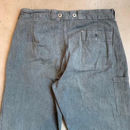 50's 60's スイス軍 デニムオーバーパンツ ワーク プラスチックボタン メタルボタン 後期型 ベイカー グレー グリーン ユーロミリタリー W36 希少 ヴィンテージ BA-1060 RM1429H