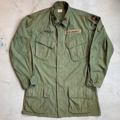 60's U.S.ARMY ジャングルファティーグジャケット ノンリップ 3rd カーキ DSA100-67-C-0018 SMALL LONG ワッペン 米軍 NAM戦 希少 ヴィンテージ BA-1076 RM1445H