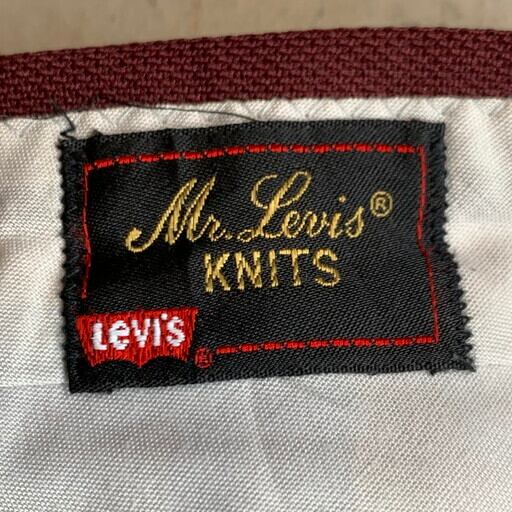 70年代のMr.Levi'sポリエステルブーツカットパンツです。Mr.Levi'sというラインから販売されていたようで、スタプレで使用されているポリエステル素材です。フロン路はSCOVILの塗装アルミジッパー。スレーキスタンプが入るこちらは白タブのBig Eが付属しています。バックポケットが正方形というのも面白いディティールです。ウエストがW37と大きめですが、シルエットはダボついていませんのでゆったりと履き易いアイテムです。右腿に薄いシミとバックのベルトループに白っぽい汚れがございますが、その他は比較的美品です。あまり見かけないラインのアイテムですので、サイズが合う方は是非いかがでしょうか。