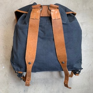 50's P.P.Berlin ベルリン警察 キャンバスリュック Polizei Prasident Berlin ジャーマン レザーショルダー ネイビー スクエア型 希少 ヴィンテージ BA-1093 RM1462H