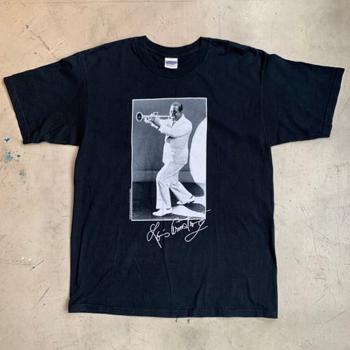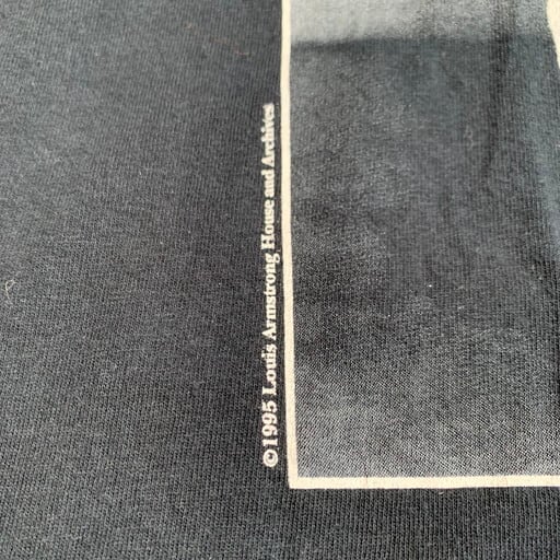 90年代から00年代のルイアームストロングハウス博物館Tシャツです。1943年から1971年に死去するまで妻のルシールと共に過ごしたニューヨーク州クイーンズ区にある家が博物館となっています。コピーライトは1995年ですが、改装され一般公開されたのが2003年頃ですので、ミュージアムとして再始動する何かのきっかけの際に作られたアイテムだと思います。フロントにはトランペットを吹くルイアームストロング氏のフォトプリントとバックにはLouis Armstrong House Meseum NYCのプリントが入ります。多少に使用感はございますが、ダメージなど特に無く美品です。Lサイズでゆったりとしたサイズ感です。デザインもシンプルで使いやすいのでコレからの季節にいかがでしょうか。ルイアームストロングやジャズミュージックがお好きな方にも是非お勧めしたい1枚です。