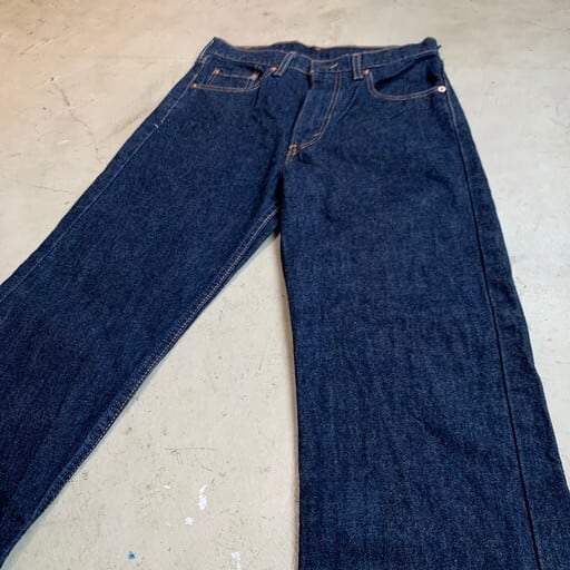 90年代のLevi's519デニムパンツです。519といえばコーデュロイが有名ですが、70年代頃からデニムも存在しており、コーデュロイ等のほかの生地に比べ流通量も少なく希少と言われています。こちらは赤タブが付く90年代のモデルですが、オレンジタブが付く70~80年代のモデルは特に希少性が高いとされています。トップ裏刻印は501。97年USA製で、使用感の少ないミントコンディションです。1~2回のウォッシュ程度の濃い状態ですので、ガンガン履き込んで育ててみてはいかがでしょうか。
