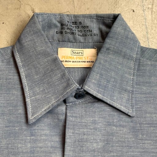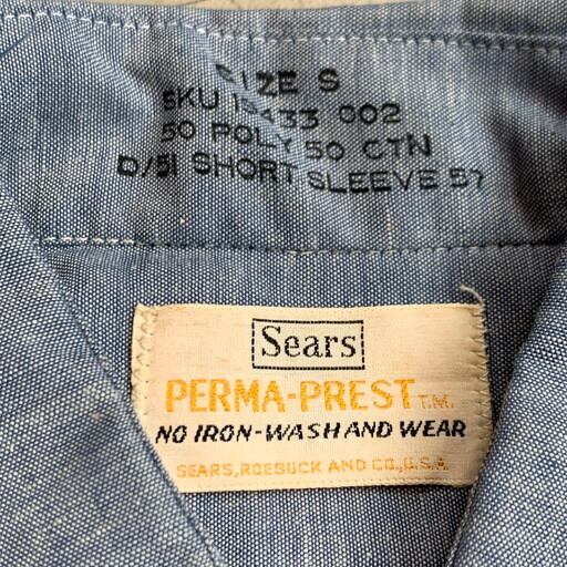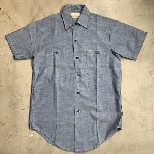70's Sears シアーズ シャンブレーシャツ B 半袖 デッドストック NOS ワークシャツ PERMA-PREST Sサイズ 襟芯無し Sサイズ 希少 ヴィンテージ BA-1117 RM1486H
