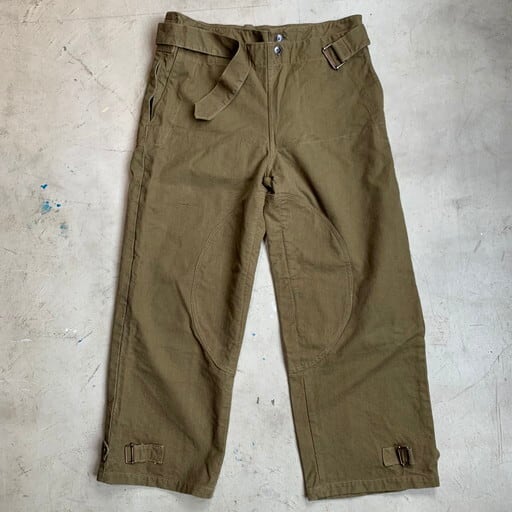 ~50's フレンチアーミー M-38 モーターサイクルパンツ ダック 前掛け エプロン カーキ ユーロミリタリー フランス軍 W37位 希少 ヴィンテージ BA-1119 RM1488H