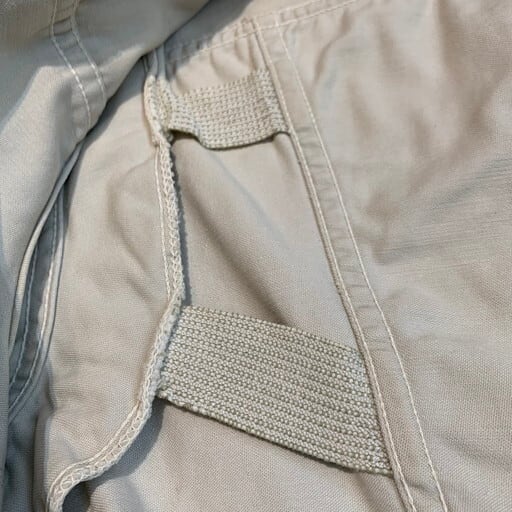 60年代頃のラングラー33MJZコットンジャケットです。11MJZはデニム、22MJZはライトブルーで66MJZはブラック。こちらは33MJZでコットンサテンの生成りの生地を使用しています。縦ベル、サイドサイズ表記、®マーク入り。フロントはTALONジッパーを使用しています。近年復刻されましたがこちらは当時のオリジナルです。全体に使用感があり、襟元の汚れや擦れ、ペンキ飛びや袖口のの擦れなどございます。ホワイトリーバイスシリーズやウェスターナーなどに比べると圧倒的に数が少ない希少なアイテムです。サイズ表記36で、メンズでいうSサイズ。着丈も短めなので、女性にもお勧めしたいアイテムです。