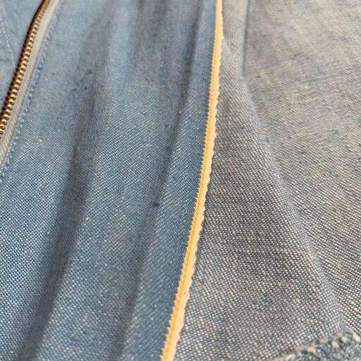 50's UNKNOWN サックスブルーデニムブルゾン 針抜きリブ 丸ポケ セルヴィッジ 耳付き シャンブレー ワークジャケット ナス紺 CONMAR ピンロック M位 希少 ヴィンテージ BA-1133 RM1502H