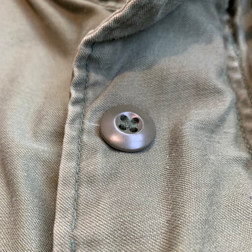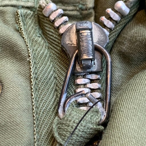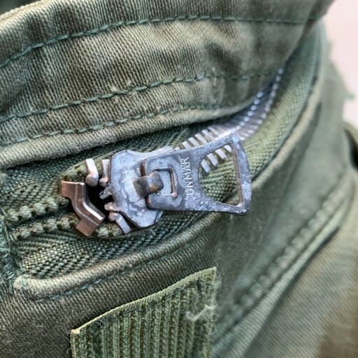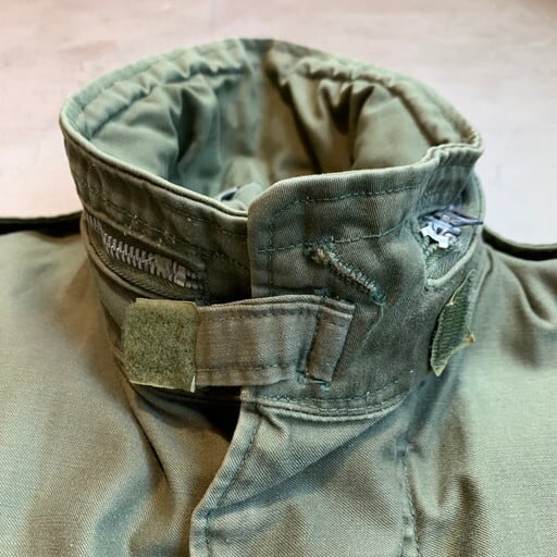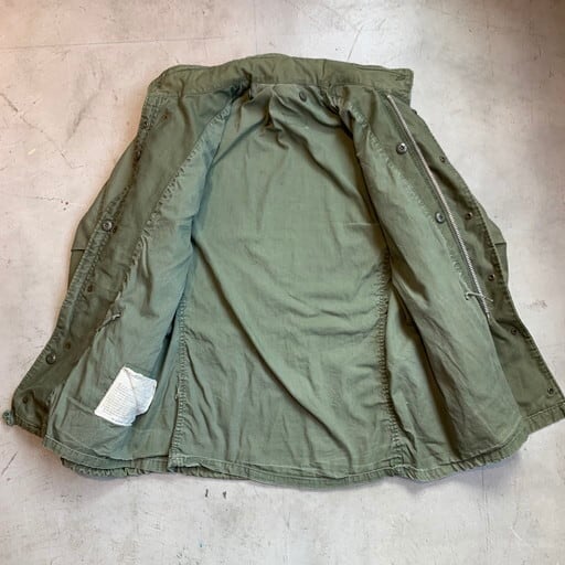 60年代頃のU.S.ARMYフィールドジャケットです。アルミジッパーが採用されたセカンドモデルとなります。コントラクト:DSA100-67-C-0125。首元とフロントはCONMAR社のアルミジッパーを採用、袖口にはマチのあるモデルです。フロント一部にシミ汚れがございます。ジッパーの差し込み部に生地の劣化が少し見られますが、今のところ開閉に問題は御座いません。首タグが無い為正式なサイズは不明ですが、MEDIUM REGULAR位。袖口のマジックテープの付きが弱いです。背面にはイエローのステンシルが入ります。3rd、4thに比べ希少な2ndタイプです。M-65フィールドジャケットは流行に囚われないミリタリーの定番アイテムですので、この機会に是非手にして下さい。