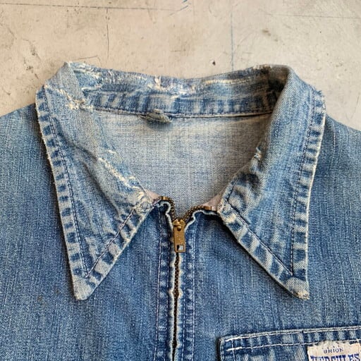 40's 50's HERCULES ヘラクレス デニムワークジャケット ジップアップ WALDES ピンロック コの字 Sears ストアブランド ダメージ リペア ジャンク 36~38位 グランジ 希少 ヴィンテージ BA-1160 RM1529H