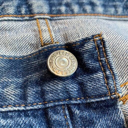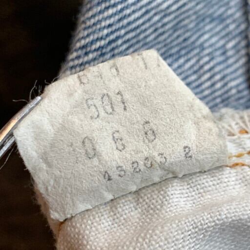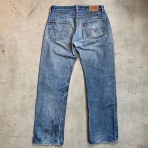 70年代頃のLevi's501デニム66前期モデルです。フロントトップボタン裏刻印6、ウォッチポケットチェーン、セルヴィッジ裏シングル×チェーンステッチ、バックポケット裏シングル、スモールe、76年製造。全体に色落ちし、前後共に黒っぽいオイルシミが見られます。ポケット縁にややダメージがあり、右腿と股に目立ちにくいリペアがございます。66モデルはアイスブルーのような色落ちが激しい個体が多く見られますが、この様なインクやオイルのシミ、ペンキ等が飛んでいる事で、よりラギットな雰囲気も演出できるのでお勧めです。ここ1~2年で66前期モデルも価格が跳ね上がりつつありますので、サイズの合う方、雰囲気系がお好きな方は是非この機会にお買い求め下さい。ウエストW36表記ですが実寸はW34のゴールデンサイズです。
