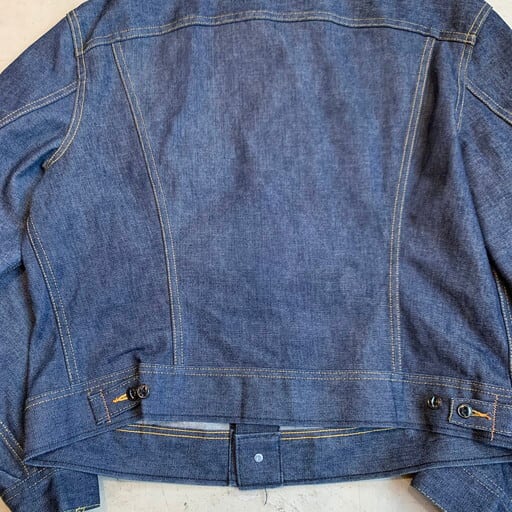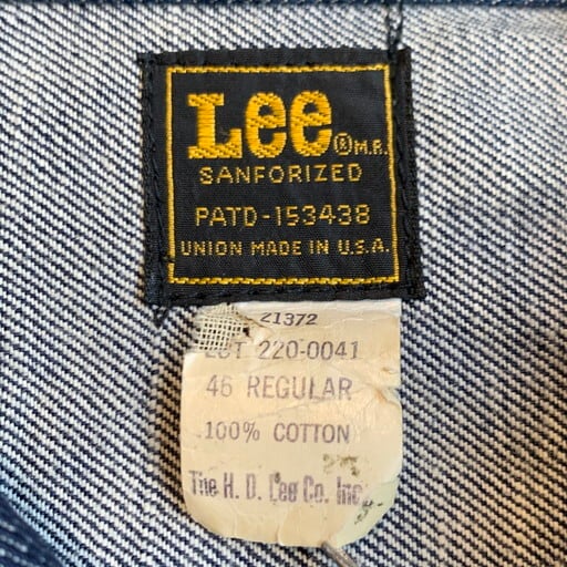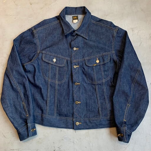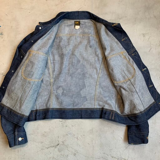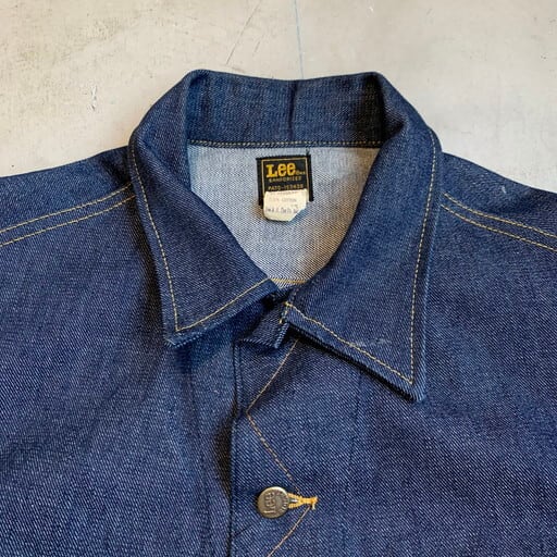 70年代頃のLee220-0041デニムジャケットです。101-Jの後継として作られたモデルで、黒タグが付き、® MRがタグとピスネームに入ります。恐らく水の通っていないノンウォッシュで、色落ちやアタリなどございません。背面に大きなシミがありますが、表からはほとんどわかりません。サイズは46REGULARと大きめですので、洗濯後1サイズほど縮みが入りよいサイズ感になります。年代こそ古くはありませんがそれでも40年以上前のアイテムで、ノンウォッシュのミントコンディション物となるとなかなか出ないので、この機会に是非手に入れてはいかがでしょうか。コレクションピースとしても今後価値が上がるグッドヴィンテージです。