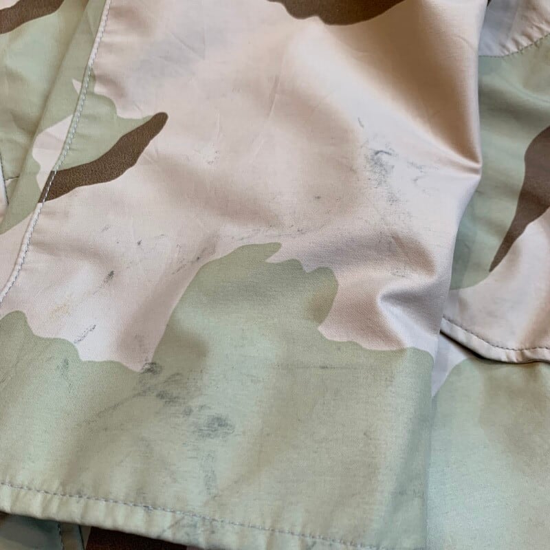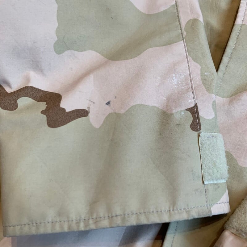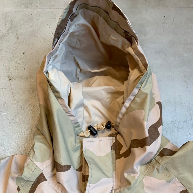 2004年コントラクトのU.S.ARMY ECWCS GORE-TEXパーカーです。フードと一体化した1stGENの後期タイプとなります。通常ウッドランドカモが有名なこのゴアテックスパーカーですが、こちらは主に砂漠地帯用で使用される3Cデザートカモ(コーヒーステインパターン)を採用しています。フロントはYKKのダブルジップ、脇下ベンチレーションシステム。使用感があり、袖口等に汚れが見られます。サイズはあまり出ないLARGE-SHORT。ざっくりとしたサイズ感で合わせていただけます。ゴアテックスパーカーは人気も高騰していますので、是非いかがでしょうか。