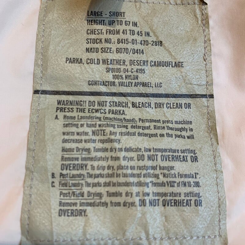 00's U.S.ARMY ECWCS GORE-TEXパーカー デザートカモ 米軍 VALLEY APPAREL LLC SPO100-04-C-4195 LARGE SHORT ミリタリー 希少 ヴィンテージ BA-1182 RM1551H