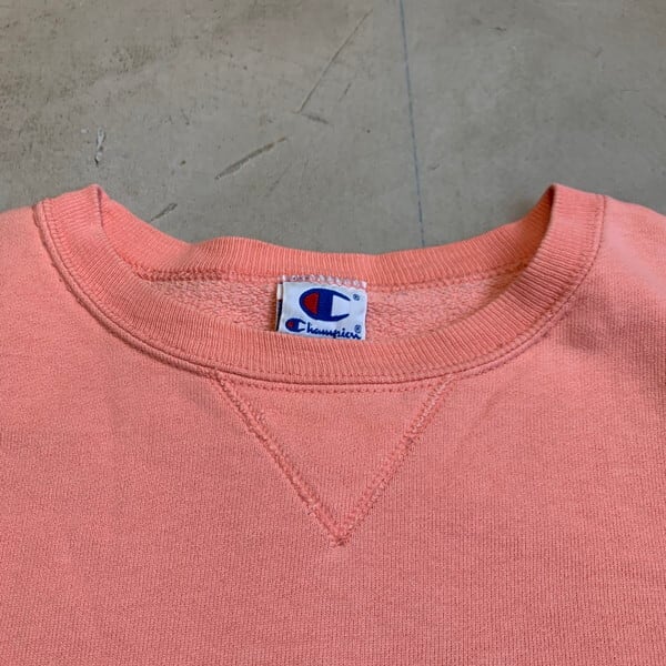 90's Champion チャンピオン ロゴスウェット 前V サーモンピンク レアカラー 刺繍 大き目 XL USA製 希少 ヴィンテージ BA-1192 RM1561H