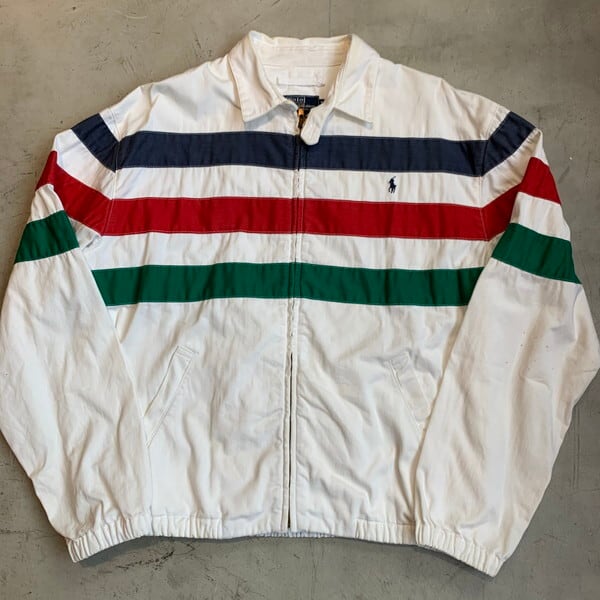 80's 90's Polo by Ralph Lauren ポロラルフローレン コットンボーダースウィングトップ チンスト マルチ レア ワンポイント刺繍 USA製 Mサイズ 希少 ヴィンテージ BA-1196 RM1565H