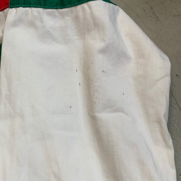 80年代から90年頃のポロラルフローレンのコットンスウィングトップです。チンストラップが付くタイプでしっかりとしたコットンを使用。希少なUSA製モデルです。単色が多いモデルですが、こちらは3色のボーダーが施され、ウールリッチやハドソンズベイを彷彿させる珍しい1着です。Mサイズ表記ですがややゆったりとしています。襟や袖口などに薄汚れが見られますがダメージは特にございません。これからの季節に使い勝手の良い厚さです。USA製もなかなか見かけなくなりましたので、お好きな方は必見です。ストリートファッションがお好きな方にもお勧めな1着です。