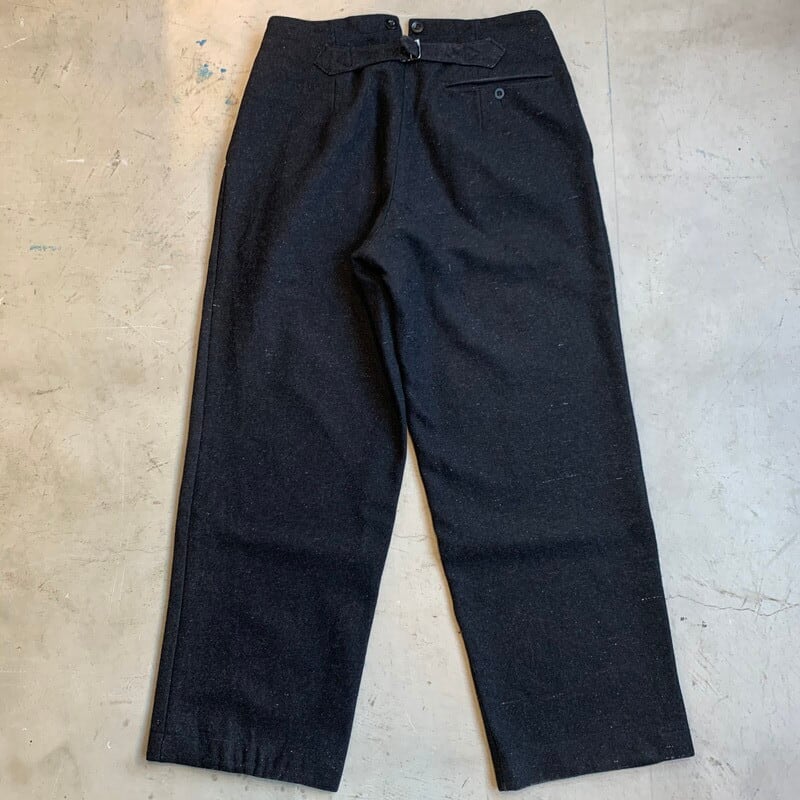 30's~ UNKNOWN ネップウールワークパンツ 針刺しシンチバック ブラック 1タック ユーロ フランス 区ロッチガゼット W32位 美品 希少 ヴィンテージ BA-1203 RM1572H