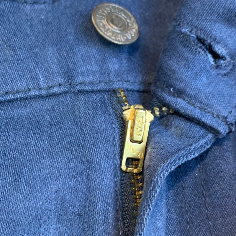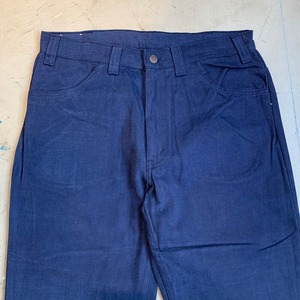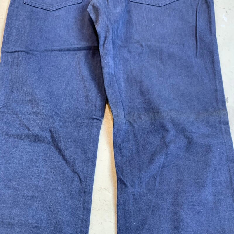 60年代から70年代頃のLEVI'S 646-62モールスキンフレアパンツです。フラッシャーは破れていなすがデッドストック。刻印375、42TALON、白タブBig E。こちらはユーロワークのアイテムで良く見られるモールスキン地を使用しています。暗めのネイビーカラーですが、穿き込めばナス紺のようなフェードも楽しめると思います。未使用のデッドストックですが、折ジワや、畳みヤケがございます。ヤケは膝裏あたりですので着用すればあまり気にならないのでは無いでしょうか。リーバイスのモールスキンアイテムはあまり見かけませんので是非この機会にいかがでしょうか。